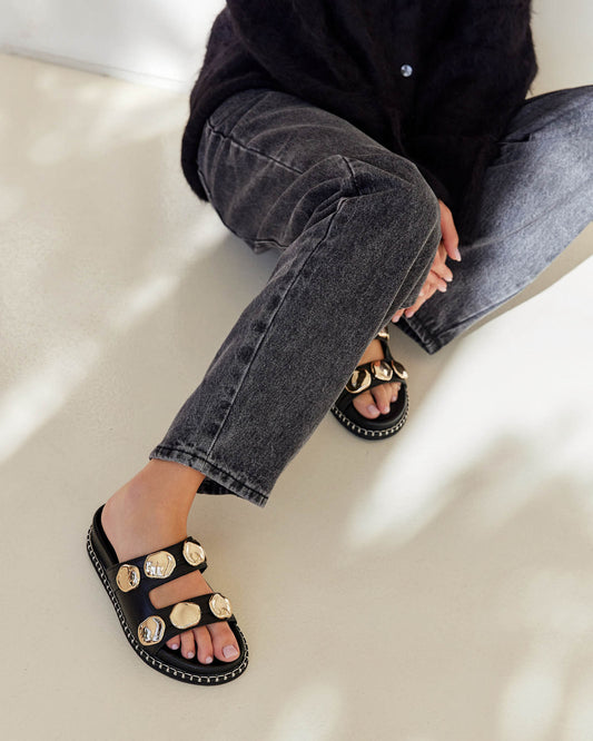Shae Leather Slide - Black