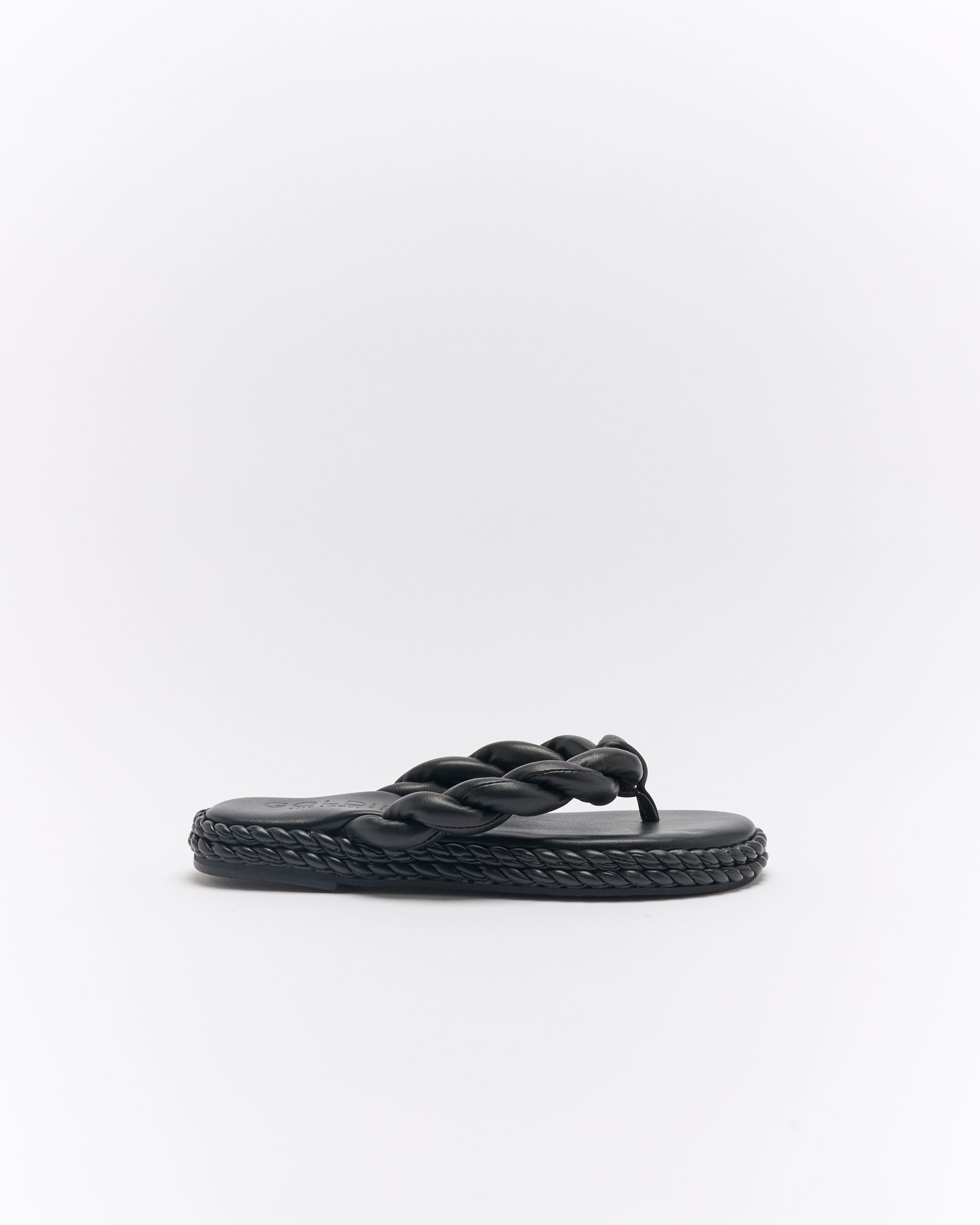The Capri Thong in Black features chic braided detailing and a sleek design, making it the perfect sandal for effortless summer elegance. Ideal for casual or elevated looks.