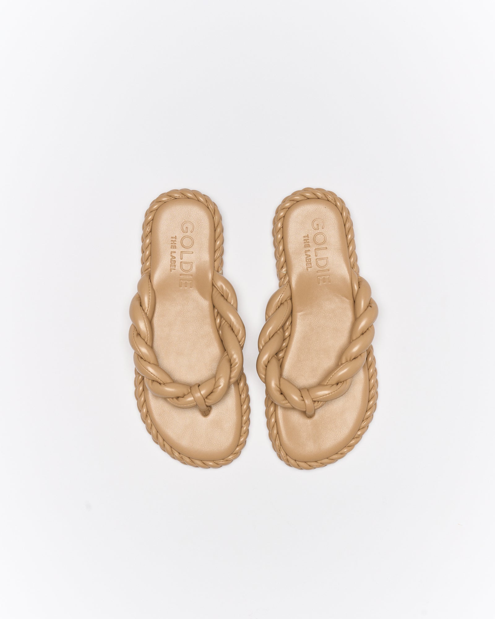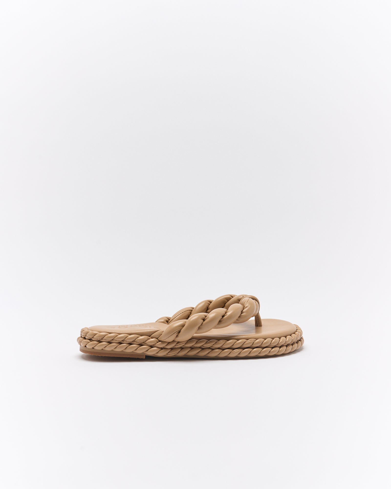 The Capri Thong in Nougat features chic braided detailing and a sleek design, making it the perfect sandal for effortless summer elegance. Ideal for casual or elevated looks.