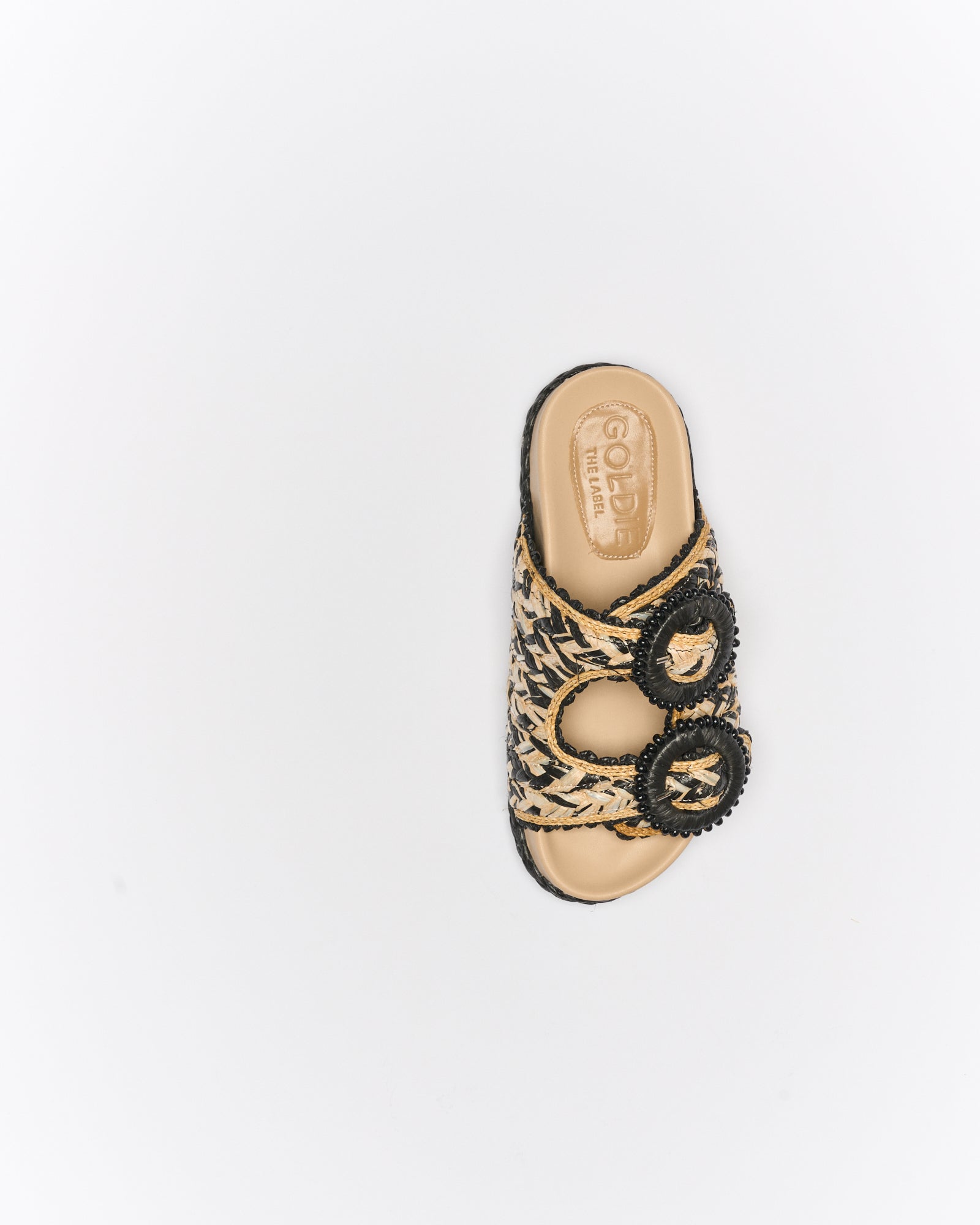 The Cielle Slide is crafted with intricate woven detailing and oversized circular embellishments for a bold, artisanal finish. Set on a moulded footbed with a contrast sole, this standout style blends comfort and texture for effortless statement dressing. Available in Black Multi